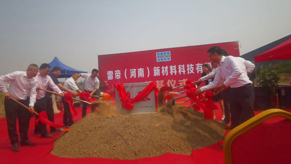 2021年6月11日,備受矚目的雷帝河南新工廠奠基儀式在河南隆重舉行。本次雷帝再次啟程成立雷帝(河南)新材料科技有限公司,總占地面積6000平方,初期構(gòu)建干粉生產(chǎn)線2條,規(guī)劃干粉年產(chǎn)能15萬噸。