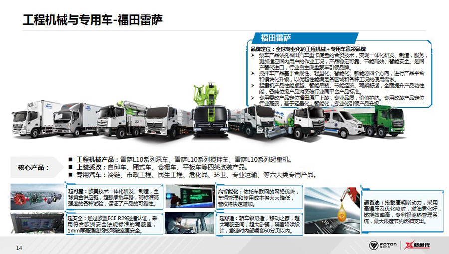 福田汽車已形成集整車制造、核心零部件、汽車金融、車聯(lián)網(wǎng)、福田電商、二手車為一體的汽車生態(tài)體系,涵蓋整車、零部件、汽車后市場三大業(yè)務(wù)版塊。整車業(yè)務(wù)覆蓋卡車、大中客車、輕型客車、皮卡、工程機(jī)械與環(huán)境裝備、新能源汽車等6大業(yè)務(wù)單元及18個(gè)產(chǎn)品品牌。在超級動力鏈層面,福田汽車與康明斯、采埃孚等全球合作伙伴,全球首創(chuàng)動力鏈集成創(chuàng)新模式,成立福田汽車動力集成創(chuàng)新中心PDIC,定制打造福田汽車第一條動力鏈產(chǎn)品——“X超級動力鏈”,引領(lǐng)中國商用車動力系統(tǒng)變革。后市場業(yè)務(wù)著力服務(wù)生態(tài)建設(shè),覆蓋用戶從購車到用車的全生命周期,積極拓展金融、二手車業(yè)務(wù),將智能科技融入服務(wù)體系,2020年,發(fā)布智能互聯(lián)業(yè)務(wù)品牌——會享福,著力推進(jìn)商用車后市場服務(wù)生態(tài)建設(shè)。