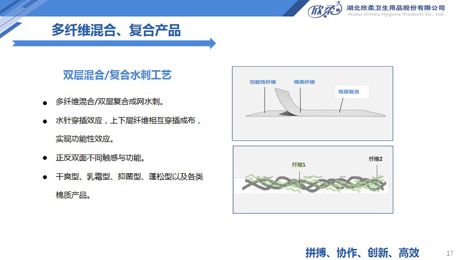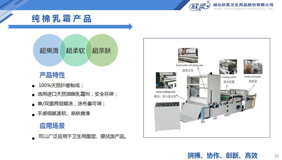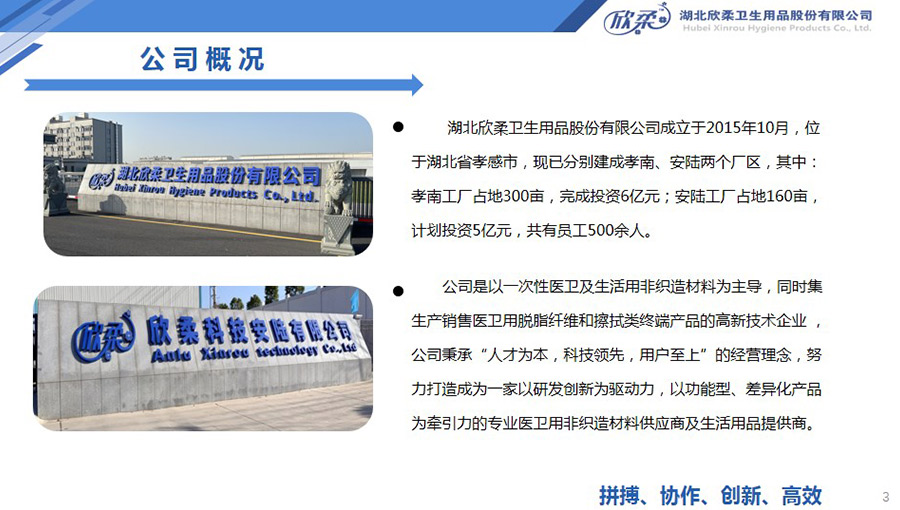 欣柔是以一次性醫(yī)衛(wèi)及生活用非織造材料為主導(dǎo),同時(shí)集生產(chǎn)銷(xiāo)售醫(yī)衛(wèi)用脫脂纖維和擦拭類(lèi)終端產(chǎn)品的高新技術(shù)企業(yè),欣柔秉承“人才為本,科技領(lǐng)先,用戶至上”的經(jīng)營(yíng)理念,努力打造成為一家以研發(fā)創(chuàng)新為驅(qū)動(dòng)力,以功能型、差異化產(chǎn)品為牽引力的專業(yè)醫(yī)衛(wèi)用非織造材料供應(yīng)商及生活用品提供商。