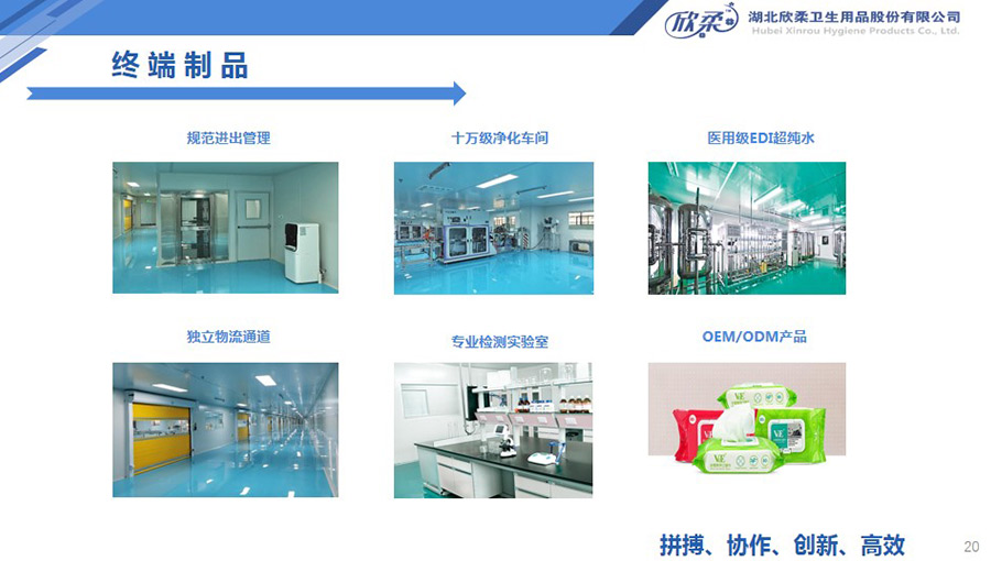 欣柔還建有終端制品生產(chǎn)線4條,具備日產(chǎn)消毒濕巾/濕廁巾9萬(wàn)包、棉柔巾65萬(wàn)包(卷)的生產(chǎn)能力。