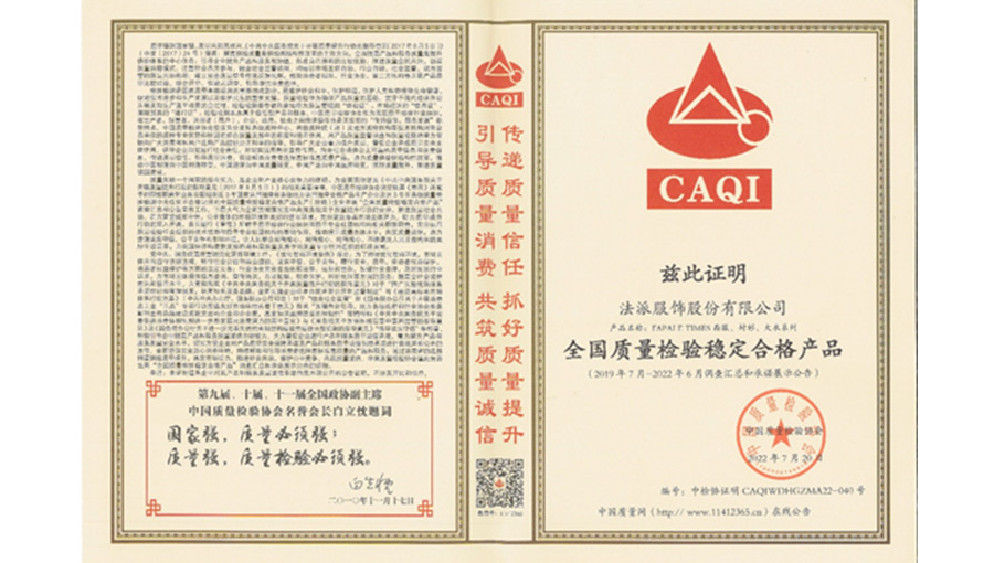 質(zhì)量是“法派”的生命,法派公司領(lǐng)導(dǎo)始終把質(zhì)量作為最重要的環(huán)節(jié)來抓。首先,從全體員工的質(zhì)量意識教育抓起,實行全員培訓(xùn)制度。新員工上崗之前,先進行崗前培訓(xùn),接受質(zhì)量教育,強化全員質(zhì)量意識。同時還加強質(zhì)檢隊伍的建設(shè),使產(chǎn)品質(zhì)量得以有效的控制。特別是法派公司成立之初,就積極貫徹ISO9002質(zhì)量管理體系標(biāo)準(zhǔn),現(xiàn)已建立了完整的質(zhì)量管理體系,并于1999年9月通過認(rèn)證。同時法派還將“致力環(huán)保和安全生產(chǎn)”作為兩個重要課題來抓,深入貫徹ISO14001國際環(huán)境管理體系和OHSAS18001國際職業(yè)健康安全管理體系標(biāo)準(zhǔn),使產(chǎn)品質(zhì)量在市場調(diào)研、設(shè)計開發(fā)、技術(shù)準(zhǔn)備、物資采購、生產(chǎn)制造、檢測試驗、產(chǎn)品銷售、售后服務(wù)等各環(huán)節(jié)得到有效認(rèn)證和保障。