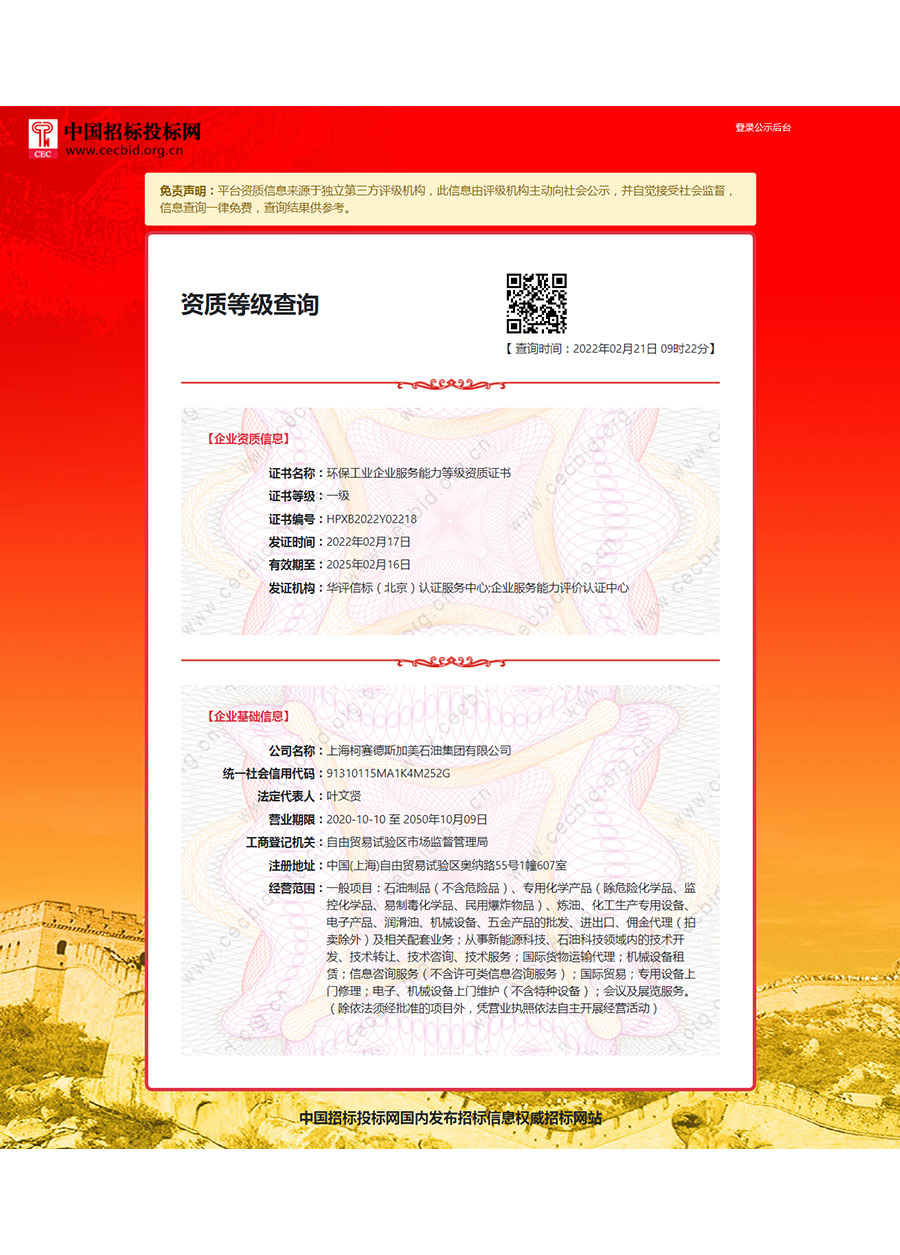 柯賽德斯集團(tuán)公司統(tǒng)一遵循嚴(yán)格的質(zhì)量保證體系,先后通過了武器裝備質(zhì)量管理體系認(rèn)證GJB9001C-2017、ISO/TS16949、IS09001質(zhì)量體系認(rèn)證、1S014001環(huán)境體系認(rèn)證及ISO45001:2018職業(yè)健康安全管理體系認(rèn)證。隨著業(yè)務(wù)領(lǐng)域的不斷擴(kuò)展,目前集團(tuán)公司先后與多家世界能源、化工方面的巨頭建立了產(chǎn)品服務(wù)、供應(yīng)保障、技術(shù)合作、技術(shù)特別支持單位等方面的戰(zhàn)略合作關(guān)系。今天,柯賽德斯集團(tuán)旗下管理著三大潤(rùn)滑油品牌,實(shí)現(xiàn)了經(jīng)營(yíng)上的多元化戰(zhàn)略格局。