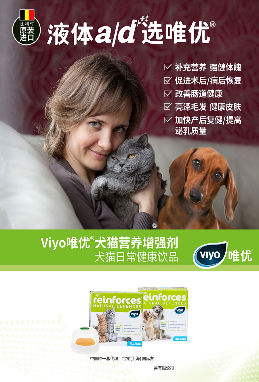 目前吉寵已是瑞典博樂丹、美國倍酷、美國添賜力、比利時(shí)唯優(yōu)、德國寵優(yōu)康益生菌、美國水膚寧長效抗菌品牌等眾多優(yōu)秀品牌的中國總代理。吉寵將堅(jiān)持匠心優(yōu)選,把更多的安全、健康、領(lǐng)先的寵物用品、食品、營養(yǎng)與保健品引入中國,為愛寵的健康與長相陪伴而努力奉獻(xiàn)。