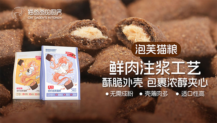 2015年,面對(duì)十年前參差不齊的貓糧品質(zhì),品牌創(chuàng)始人貓爸在貼吧分享的自制貓飯被網(wǎng)友瘋搶,于是,“貓爸爸的廚房”就此誕生。