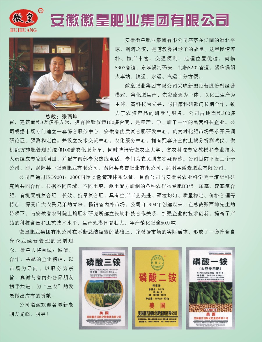 主要產(chǎn)品:徽皇復(fù)混肥料