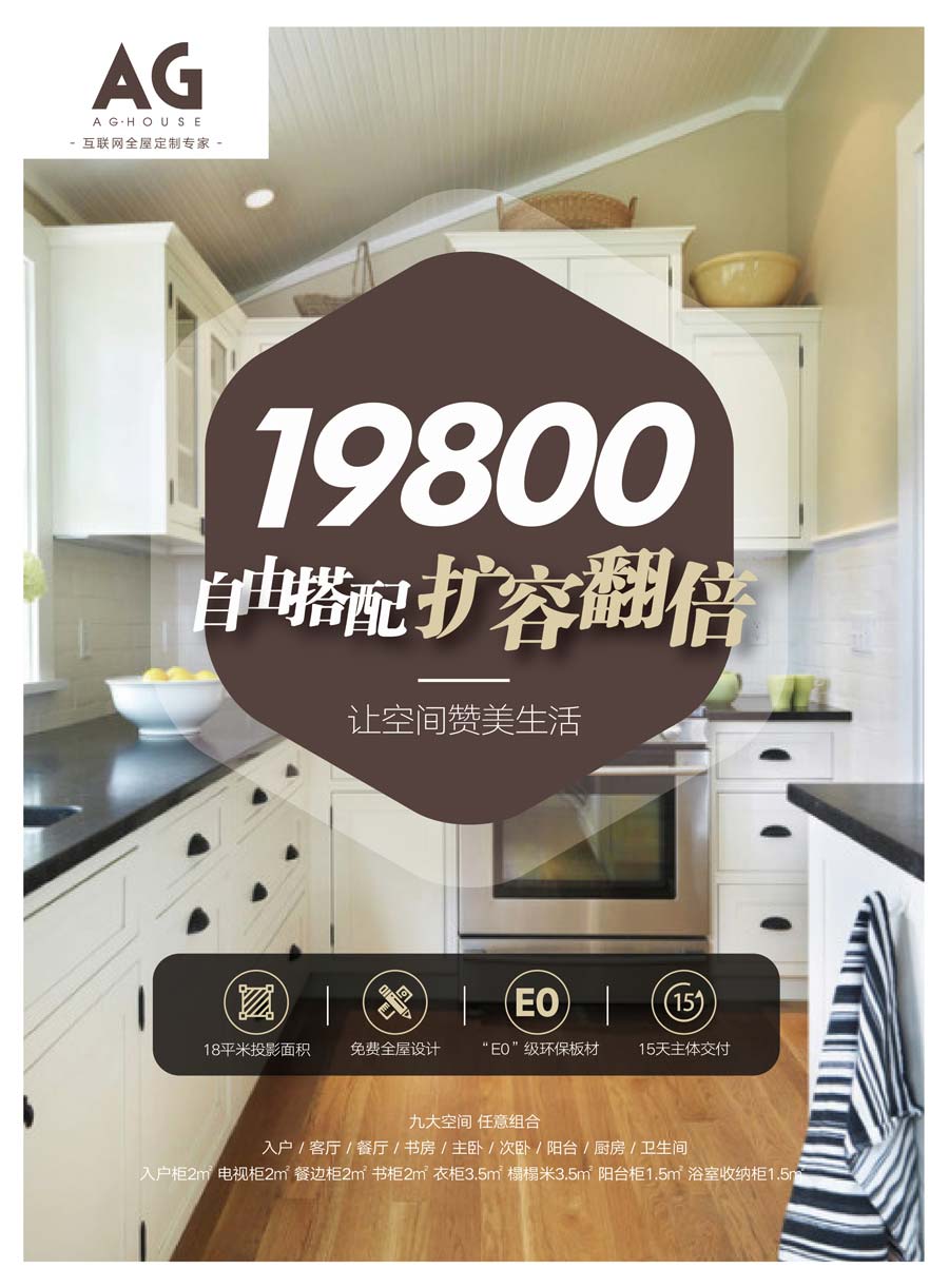 主要產品:AG·HOUSE櫥柜、衣柜、全屋定制、地板、木門等