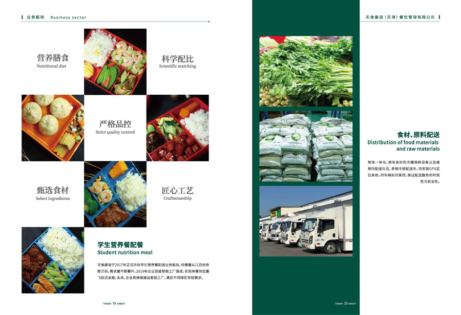 天食康誼(天津)餐飲管理有限公司隸屬于天津食品集團(tuán),公司總部坐落于天祥工業(yè)園區(qū),總占地面積15000平方米,主營(yíng)業(yè)務(wù)涵蓋食材采購(gòu)運(yùn)輸、學(xué)生營(yíng)養(yǎng)餐配餐、駐地餐廳服務(wù)、美食廣場(chǎng)運(yùn)營(yíng)。依托母公司強(qiáng)大食品產(chǎn)業(yè)優(yōu)勢(shì),與眾多知名品牌供應(yīng)商形成長(zhǎng)期合作關(guān)系,整合產(chǎn)業(yè)鏈上下游資源,打造“從田間到餐桌” 鏈條,成為行業(yè)內(nèi)極具優(yōu)勢(shì)的團(tuán)膳企業(yè)。目前服務(wù)的客戶有總醫(yī)院、民航大學(xué)、天地偉業(yè)、農(nóng)行、鞍山道小學(xué)等,涵蓋各行業(yè)企事業(yè)單位、大中小學(xué)。