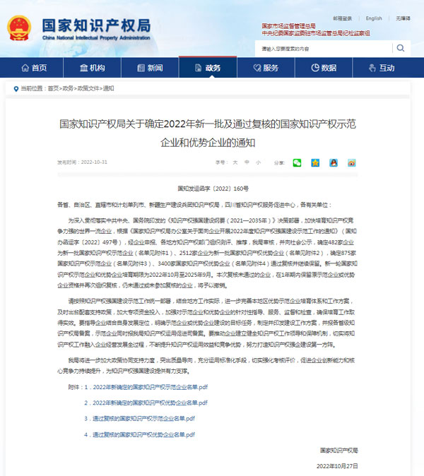 “國家知識產(chǎn)權(quán)優(yōu)勢企業(yè)”是我國知識產(chǎn)權(quán)管理領域的最高榮譽之一,是國家對企業(yè)在知識產(chǎn)權(quán)的創(chuàng)造、運用、保護、管理等方面的突出工作所作出的高度評價。入選企業(yè)都是擁有自主知識產(chǎn)權(quán)和知名品牌、具備行業(yè)競爭優(yōu)勢的技術(shù)領先企業(yè)。