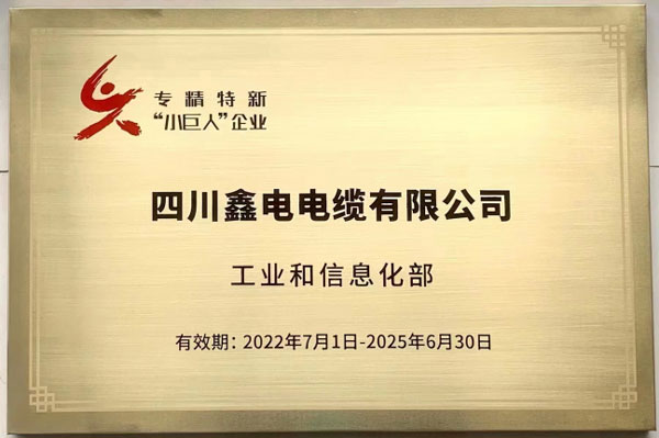 今年九月,工信部公示了第四批國家級專精特新“小巨人”企業(yè)名單,鑫電電纜在電線電纜領(lǐng)域多年深耕,成功入選名單。這是對公司創(chuàng)新能力、技術(shù)水平、行業(yè)地位、質(zhì)量效益等方面及綜合實力的認可,將持續(xù)提升公司品牌知名度,增強公司競爭力。