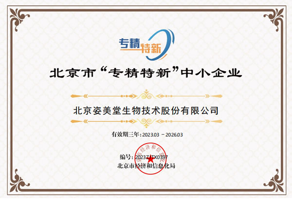 此次獲評認定為北京市“專精特新”中小企業(yè),是對姿美堂高質(zhì)量可持續(xù)發(fā)展的又一次全面性檢閱,也是對姿美堂14年來精耕細作、由科技“制造”向匠心“質(zhì)造”奮力進階的高度認可,充分反映了姿美堂在企業(yè)創(chuàng)新能力、關(guān)鍵核心技術(shù)的突破以及質(zhì)量效益等方面的不懈努力與優(yōu)異成績。