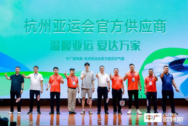 在杭州亞運(yùn)會(huì)倒計(jì)時(shí)50天的關(guān)鍵節(jié)點(diǎn),浙江中廣電器集團(tuán)股份有限公司副總裁王曉鵬以及8位中廣經(jīng)銷商代表,在鮑春來的指導(dǎo)下將彩虹羽毛球一齊發(fā)出,以這種新穎的方式共同開啟了“溫暖亞運(yùn) 愛達(dá)萬家”中廣歐特斯第二季主題營銷活動(dòng)。